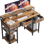 I took a chance on this one, having no reviews and all, but it is genuinely a good buy. The desk is almost four feet long, so it has room for everything i need for school. I can have my laptop open, notebook open, my waterbottle, my planner, a stack of notebooks and other nicknacks and it still doesn’t feel cramped. The drawers are fabric, which I didn’t know when I bought it, but they are just as solid, only complaint would be that they aren’t white. The drawers are really deeper, so they have lots of storage and the shelves on the bottom can easily hold a monitor. It took my boyfriend about 30ish minutes to build this so not too bad, but be warned, nothing in this is put together, including the drawers. Overall, good product for the price.