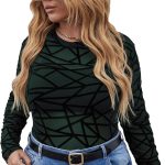 Lots of stretch to this top. I wish the neckline came down a bit further but I like the accent buttons. Super comfy. 5’2″ 220lb apple shape, purchased 2x and it runs true to size. Covers what you want covered and doesn’t make its way up when you move.
